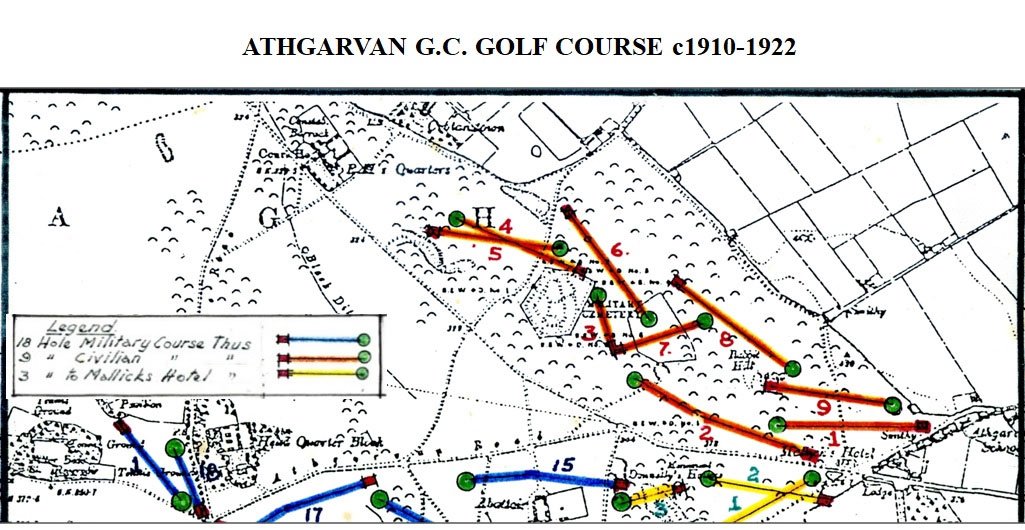 The course was set up by ordinary civilians and businessmen who could not gain membership at the Royal Curragh Golf Club of the time. After the British army evacuated the Curragh in 1922 the old links gradually fell into disuse. Below is the layout of the old circa pointed out to Mr. Eric Wallace by Mr. Bill Price (Both of Newbridge). Eric drew the maps of the Athgarvan and Royal Curragh Golf Courses as described to him by Bill who began golfing the Curragh circa in 1913.
